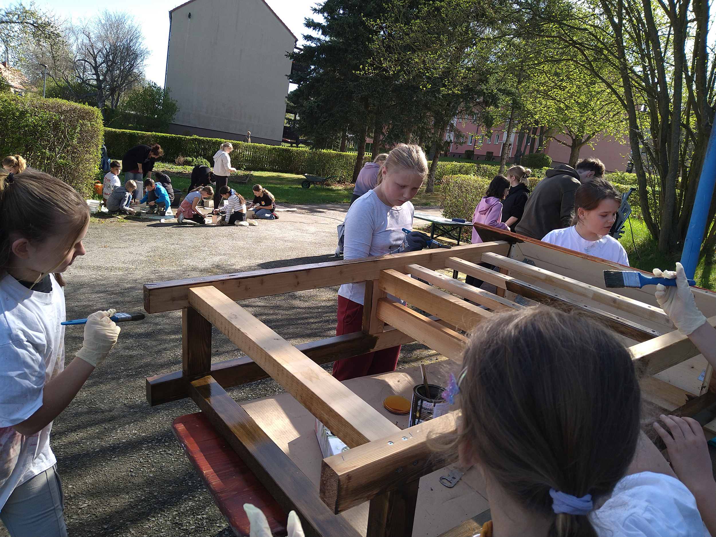 Der Tag verfolgte mehrere spannende Ziele: Die Kinder sammelten erste handwerkliche Erfahrungen, lernten viel über Holz und natürliche Baumaterialien, stärkten den Gemeinschaftssinn durch Teamarbeiten und setzten sich mit Umwelt- und Naturschutz auseinander. Außerdem trugen sie aktiv zur Verschönerung des Schulgeländes bei.