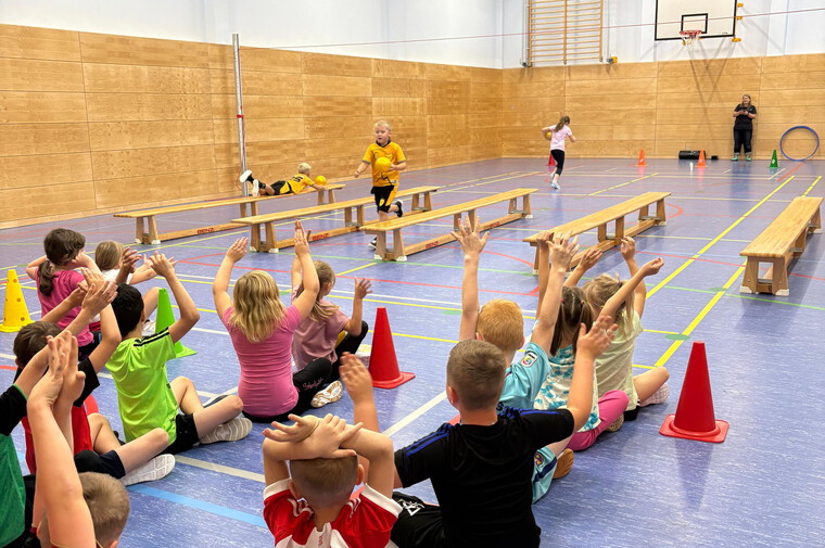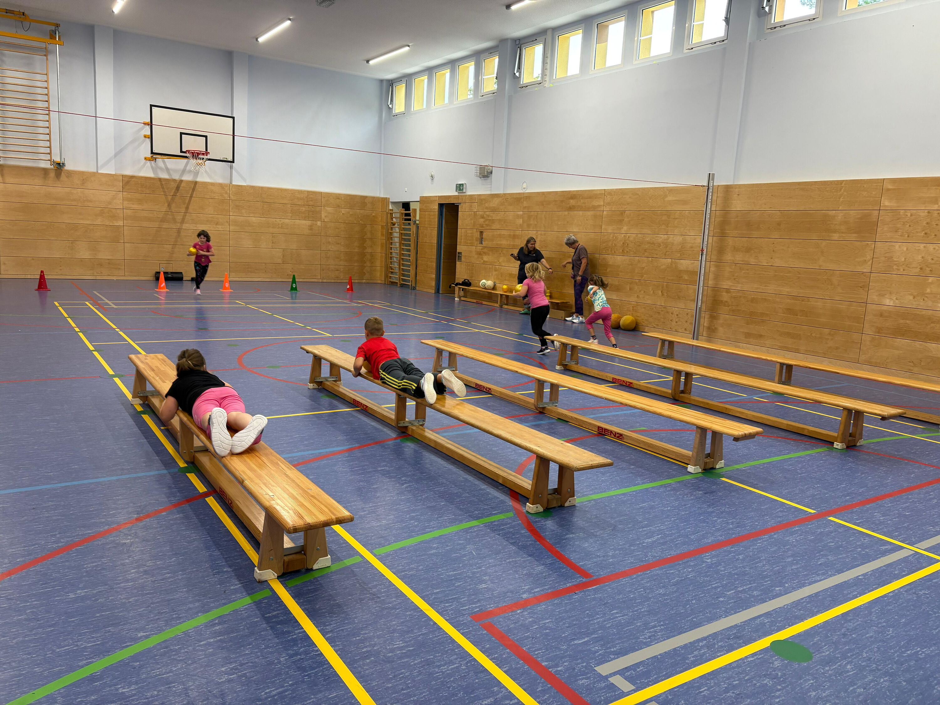 Am 5. September 2025 standen für die Klassen 1 und 2 eine verkürzte Turnhallenversion sowie passende Spiele auf dem Programm. Geplant waren Ball-über- und Ball-unter-der-Leine sowie Staffelspiele, die wir gut an das vorhandene Wetterfenster angepasst haben. So konnten wir intensives Bewegen und koordinative Übungen sinnvoll in der Turnhalle durchführen.