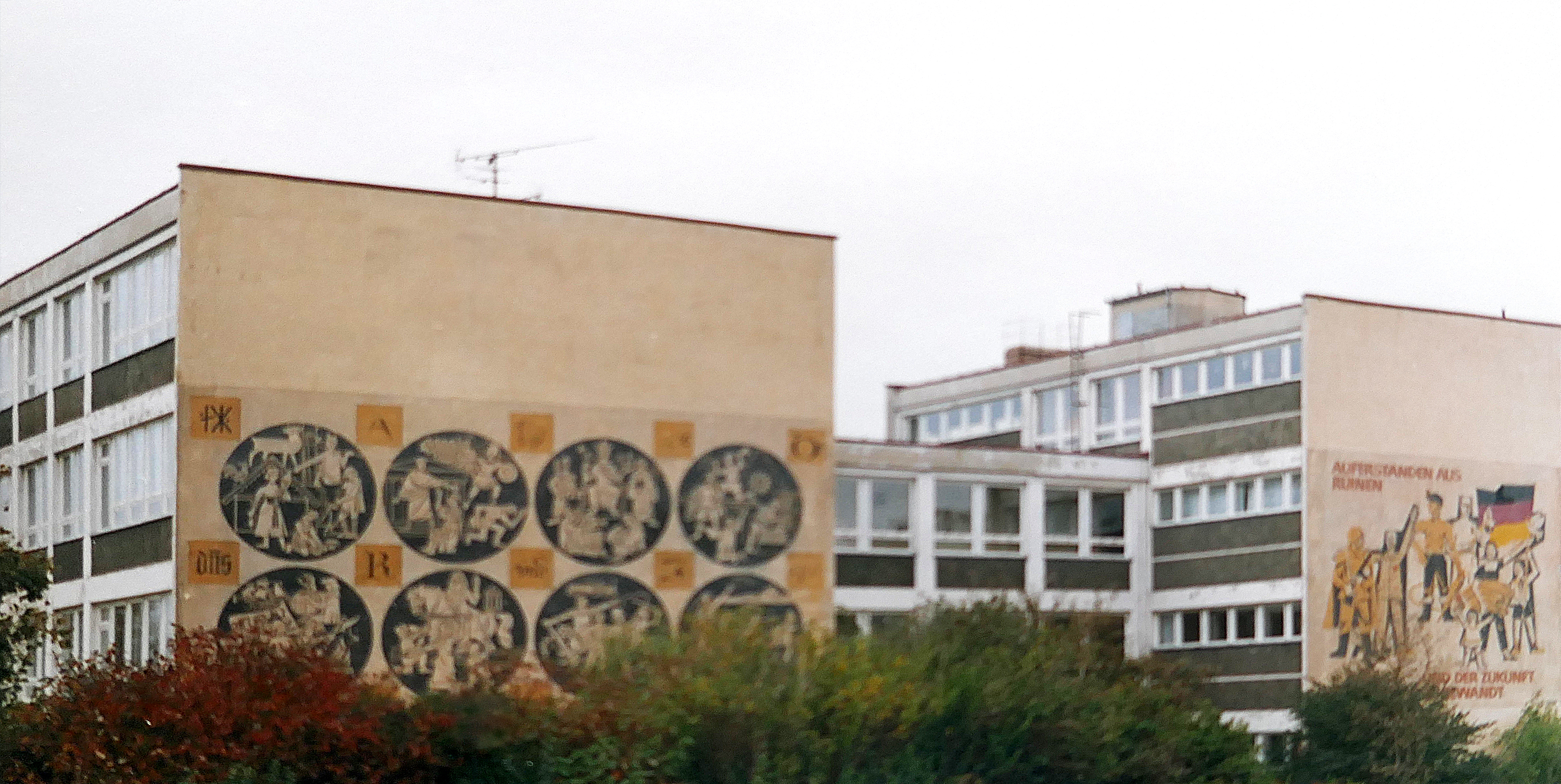 Unsere Grundschule wurde 1970 mit dem Entstehen des damaligen Neubaugebietes „Wilhelm-Pieck-Ring“ erbaut und erhielt den Namen „Zehnklassige-Polytechnische-Oberschule Friedrich-Engels“.