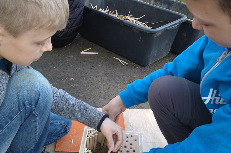 Spannender Projekttag an der Grundschule Friedrich-Engels-Schule: Gemeinsam bauen wir ein Insektenhotel