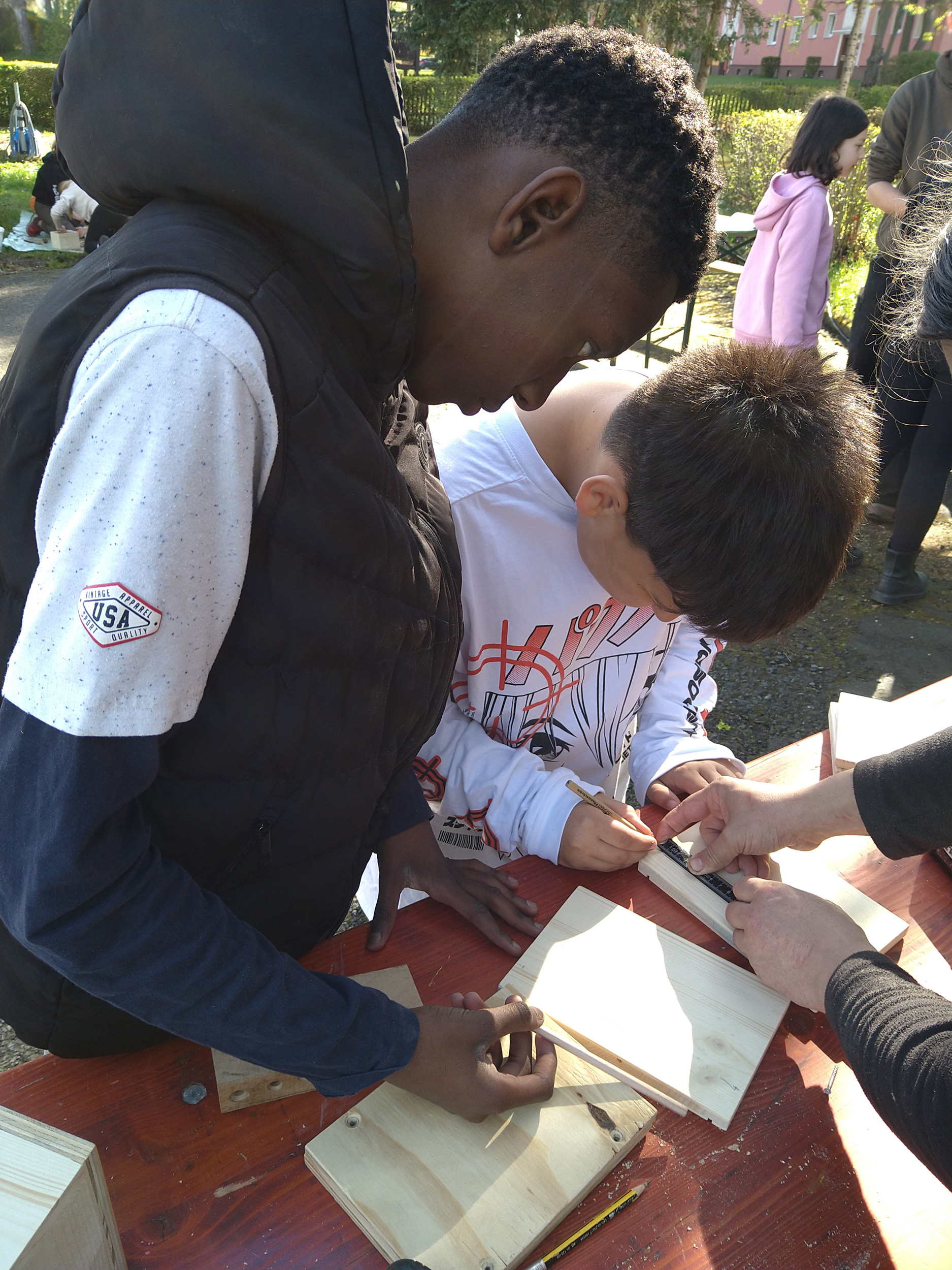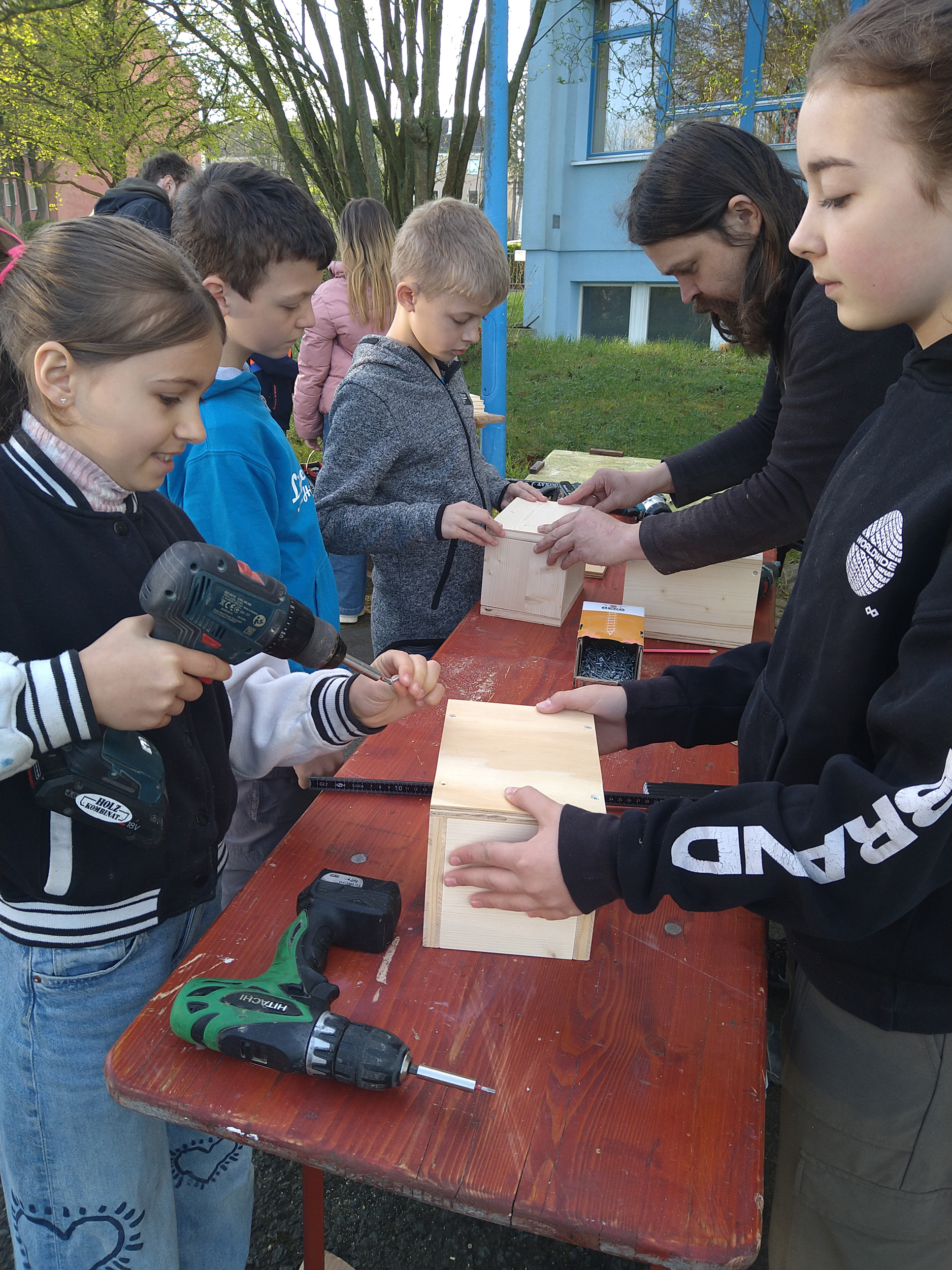 Der Tag verfolgte mehrere spannende Ziele: Die Kinder sammelten erste handwerkliche Erfahrungen, lernten viel über Holz und natürliche Baumaterialien, stärkten den Gemeinschaftssinn durch Teamarbeiten und setzten sich mit Umwelt- und Naturschutz auseinander. Außerdem trugen sie aktiv zur Verschönerung des Schulgeländes bei.