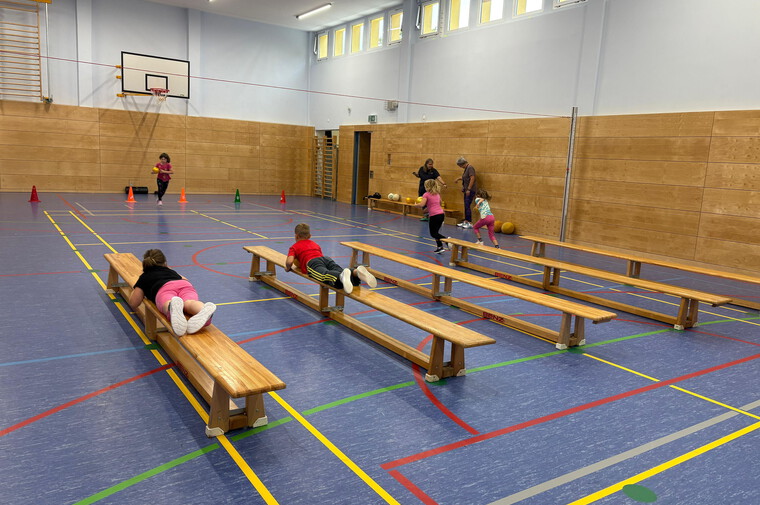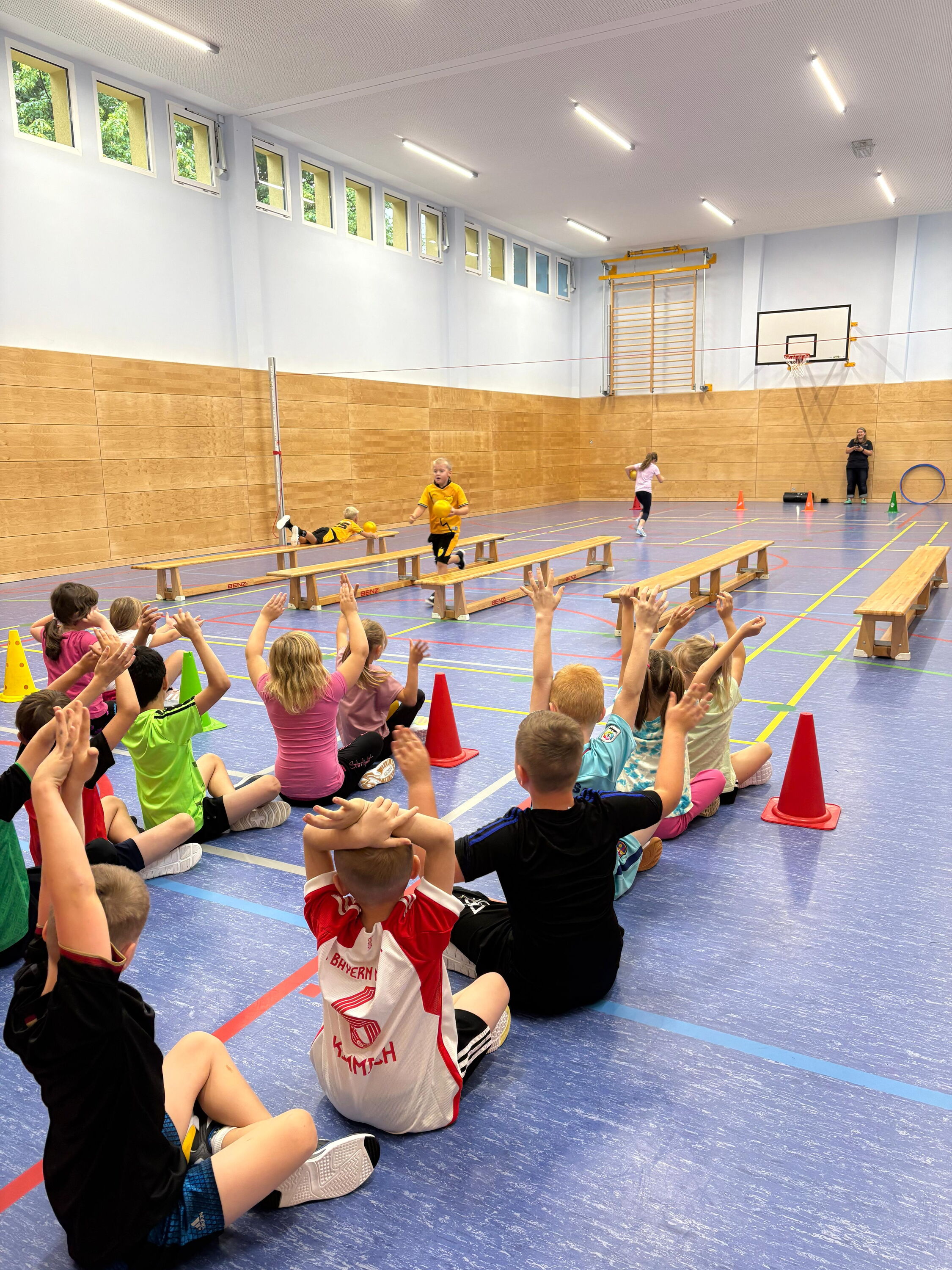 Am 5. September 2025 standen für die Klassen 1 und 2 eine verkürzte Turnhallenversion sowie passende Spiele auf dem Programm. Geplant waren Ball-über- und Ball-unter-der-Leine sowie Staffelspiele, die wir gut an das vorhandene Wetterfenster angepasst haben. So konnten wir intensives Bewegen und koordinative Übungen sinnvoll in der Turnhalle durchführen.