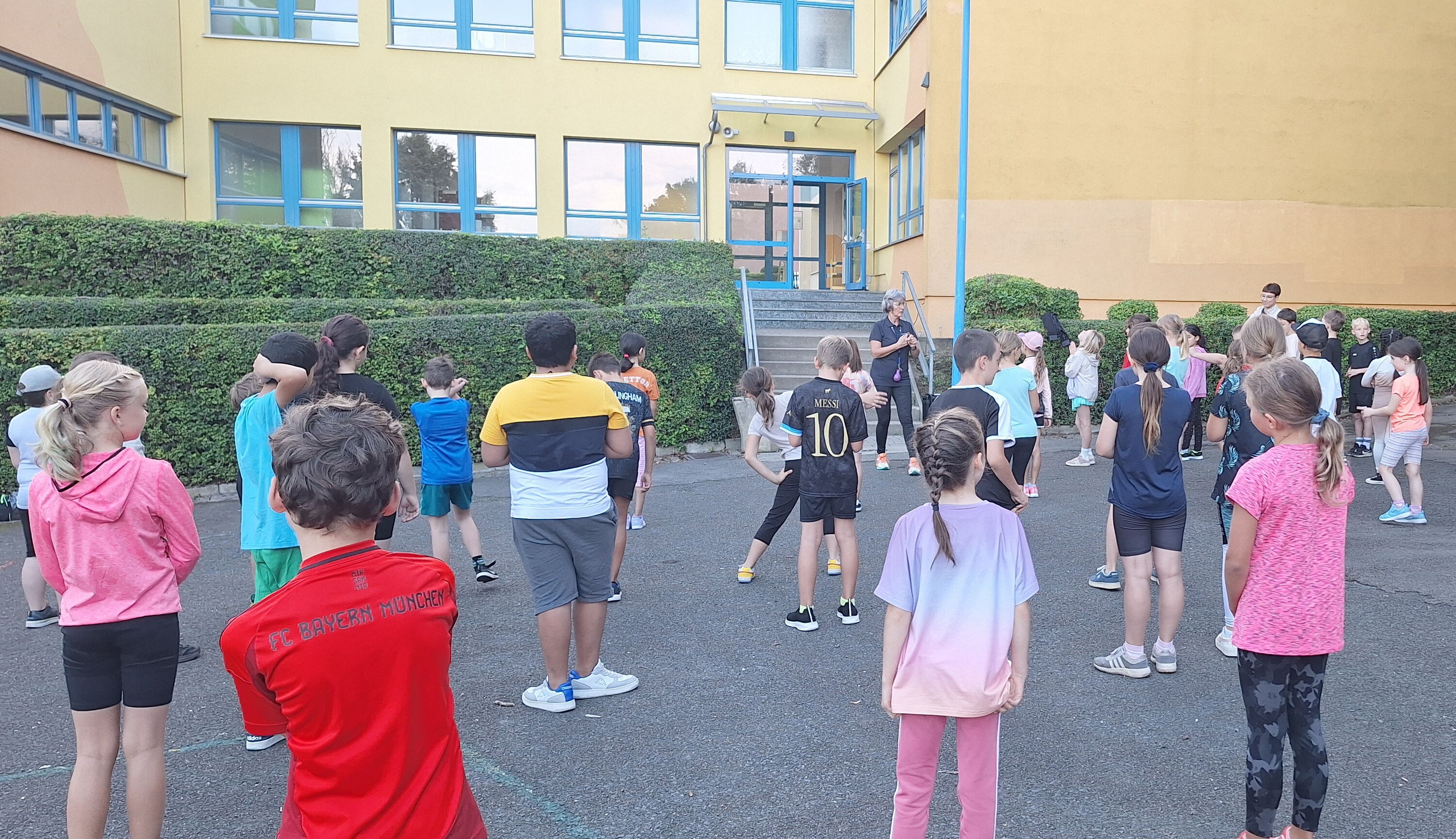 Unser Sportfest 2025/2026 der Klassen 3 und 4 fand am 4. September 2025 bei strahlendem Sonnenschein statt. Drei Klassen, optimales Wetter und eine fröhliche Stimmung begleiteten den Tag. Mit guter Musik starteten wir die Erwärmung auf dem Schulhof, danach ging es auf dem Sportplatz richtig los.